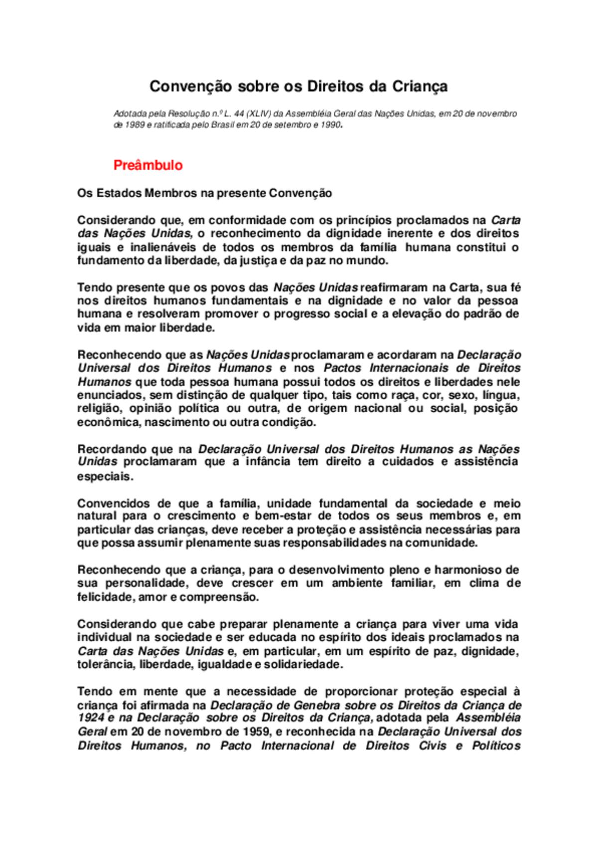 Convenção sobre os direitos da criança