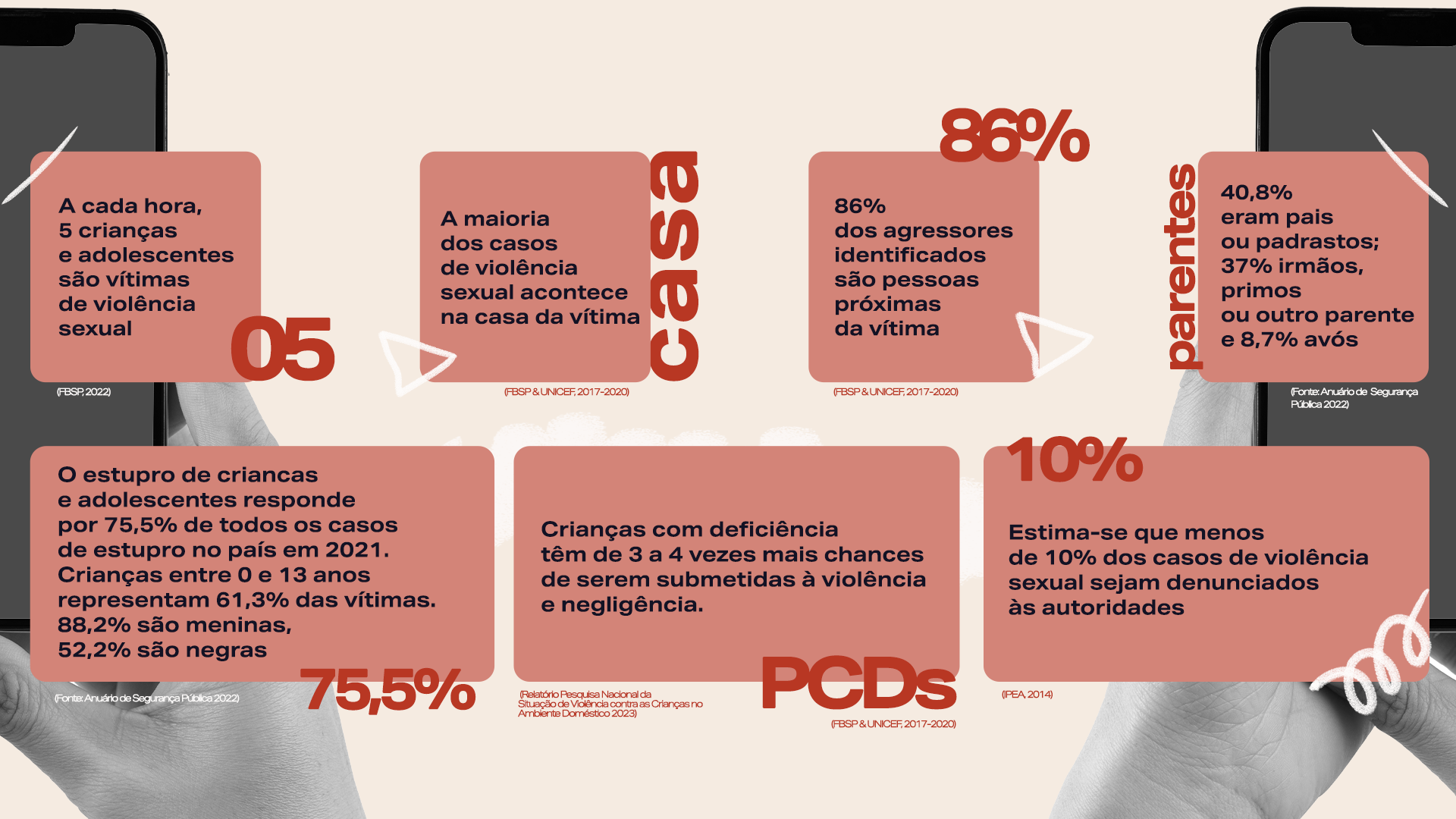 Não há dados suficientes e completos para saber o tamanho real do fenômeno da violência sexual contra crianças e adolescentes no Brasil. Isso se dá tanto pela falta de integração dos dados dos órgãos responsáveis como pela imensa subnotificação das denúncias. Estima-se que apenas 10% dos casos de abuso e exploração sexual contra crianças e adolescentes sejam, de fato, notificados às autoridades.